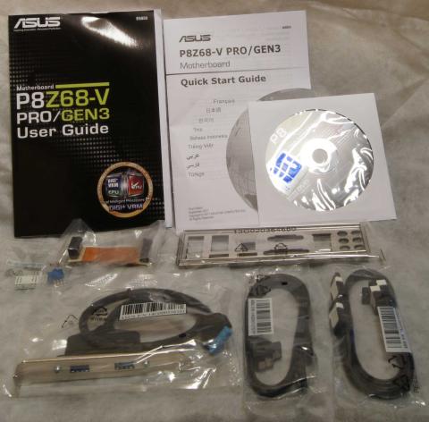 同梱物はマニュアル、ドライバCD、フレキシブル型のSLIケーブル、バックパネル、USB3.0ブラケット、SATAケーブル4本、それとケース用のピンプラグが2つとあっさりとしている。