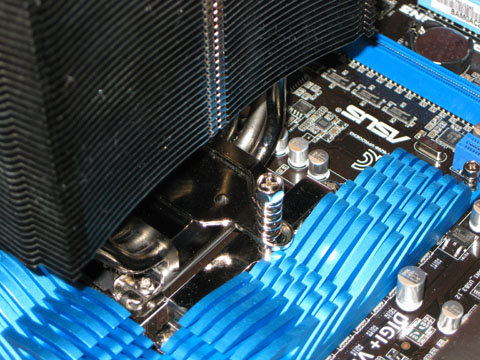 CPUにシリコングリスを付与したらクーラーを乗せてリテンションをネジ止めします。