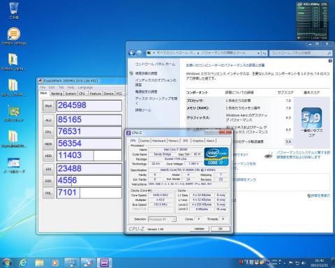使用しているCPUは Intel core i7 2600k 3.4GHz (Turbo 3.8GHz ) です。