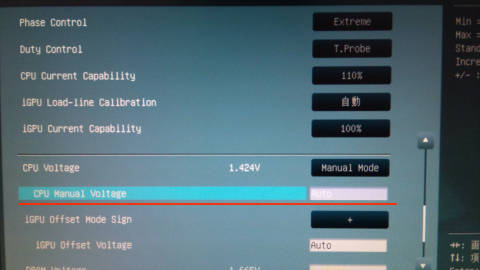 マザーボードに任せたほうが、危なくなったら電圧を上げ下げしてくれます。