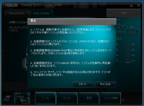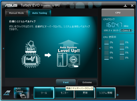 TPUスイッチは有効にした場合、自動的にオーバークロックしてくれるそうです。