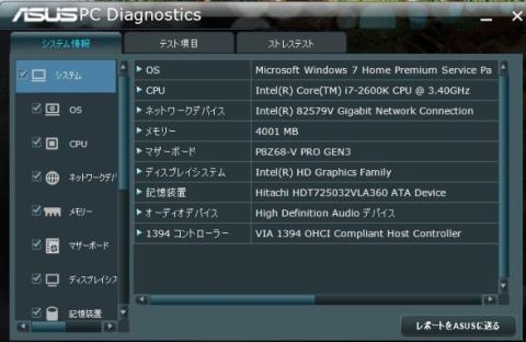 またCPU、メモリー、ビデオのストレステストが行えます