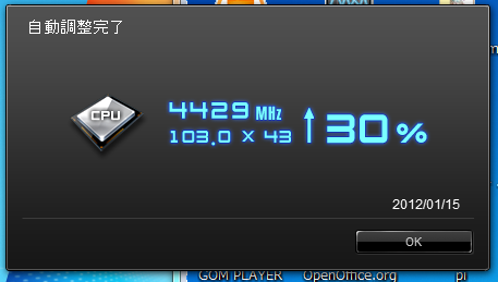 最終的に設定が完了すると次のようがウィンドウが表示され、オーバークロックした結果を教えてくれます。
