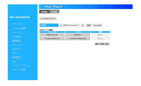 USB機器(USBプリンターやUSBハードディスク)を接続して、