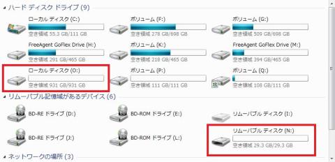 この状態で、エクスプローラーを確認すると、USBメモリはリムーバブルディスクに、