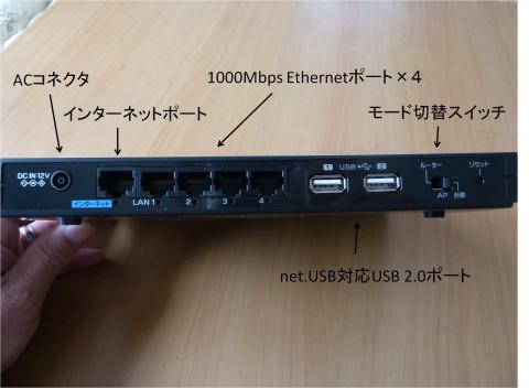 ・1Gbps対応の有線LANポート4つ装備。