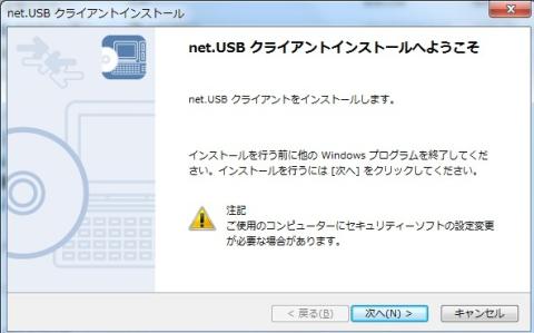 プリンタをUSBポートに接続し「net.USBクライアント」を起動します。