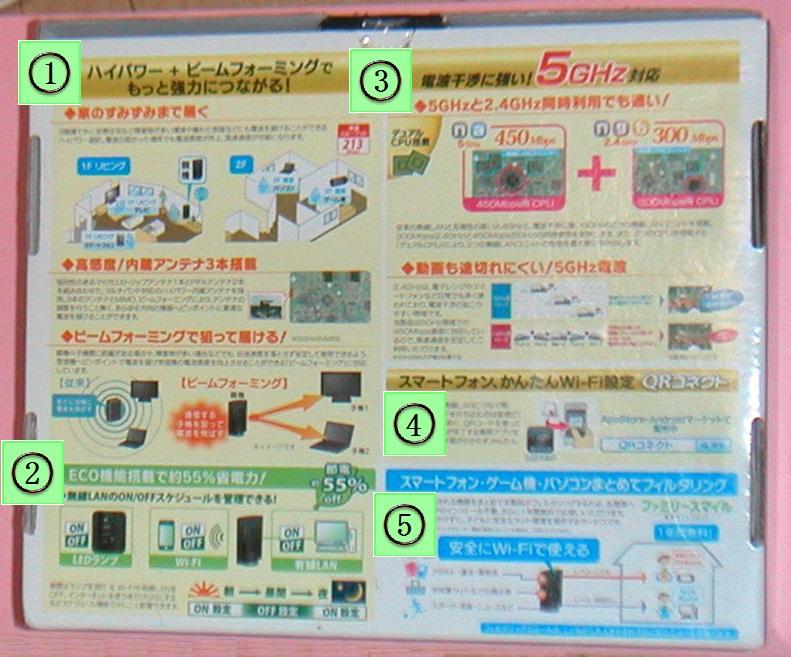 ①ハイパワーとビームフォーミング 無線LAN : 450Mbps(規格値)対応