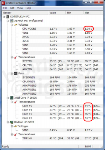 ・マザーボード側 CPU VCORE のMax値が1.4V付近