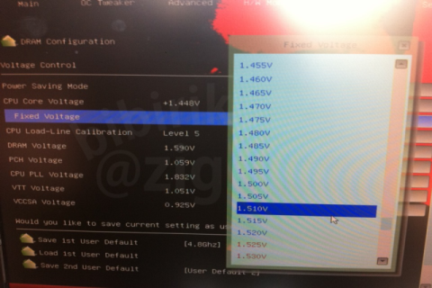 CPU :5.0Ghz CPU VCORE 1.535V へ変更