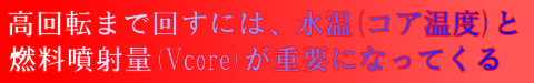 回転数を上げてパワーを絞りだすには、燃料噴射量(Vcore)を増やす必要があります。