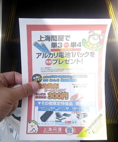 今回、ドスパラで普通のマザーボード(ASRock H61M-VG3)を購入すると、パンフが貰え、それを上海問屋フロアへ持っていくと電池が貰えるという形でした。