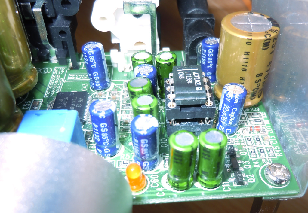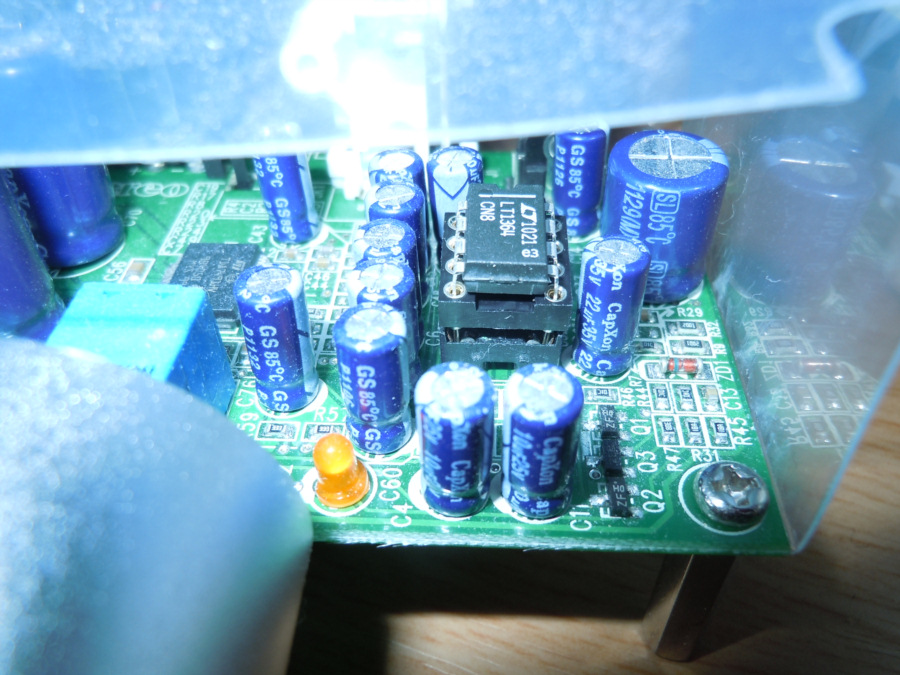 音質にはいいことがないのですが、交換する際に足を痛めないように、LT1364に下駄替わりのソケットを嵌めてます。