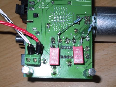 5) VRの中点から 1kΩ(KOA金属皮膜抵抗) - 1uF (WIMA MKS2) で、C6/C45の-側までショートカット