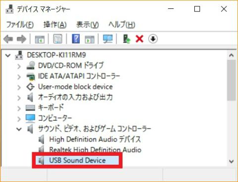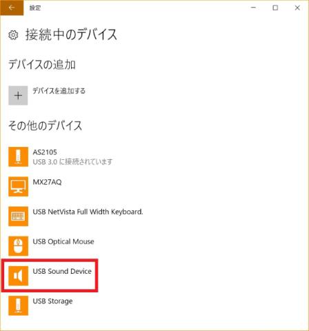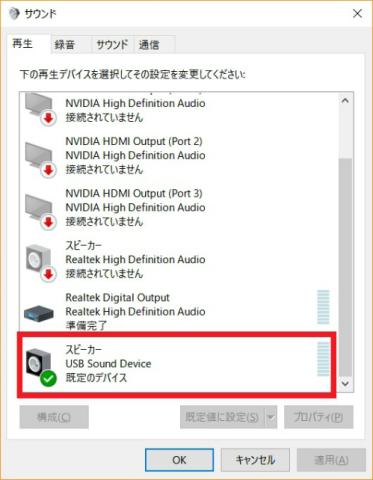 デバイスの設定では、USB Sound Deviceは「スピーカー」として認識する様です。