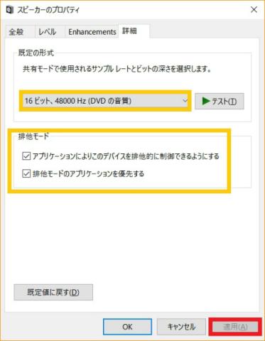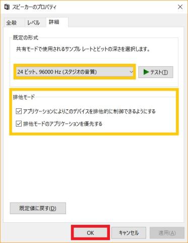やって居る内に、最高で「24ビット、96000HZ(スタジオの音質)」に設定出来る様になりました。