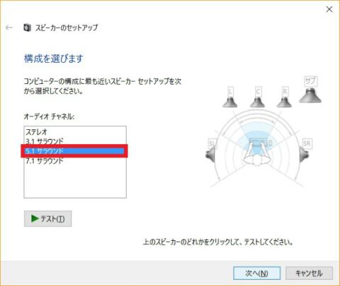 「スピーカーのセットアップ」は「5.1ch」に設定します。