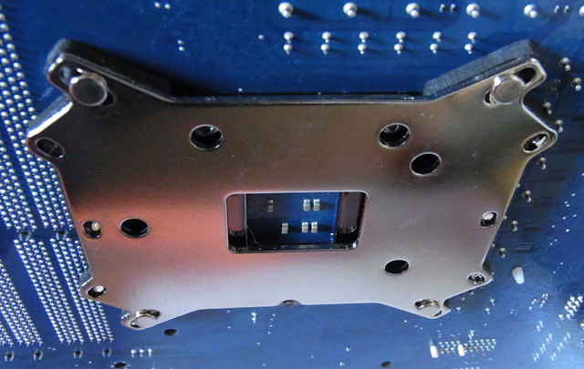 バックパネルは絶縁体を兼ねたスポンジに厚みがあるのでCPU自体のバックパネルからは浮くようになっています。ただそのスポンジがネジ穴近辺にしかないので、背面のハンダ突起が大きいマザーだともしかしたら…?程度ですかねー。