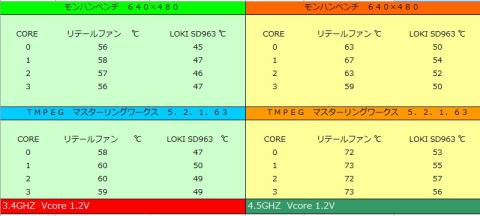 Vcore電圧も違っているので正確な比較ではないのですが、かなり下がっています。
