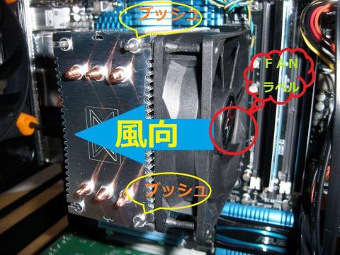 ★ファンの取り付け方、風向(ファンのセンターのシール確認)、ゴムブッシュの取り付け方法