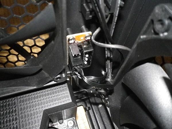 <画像>アングルがへんですが、、隅っこにあるペリフェラル電源です。ここから3つのファンに配線されています・・・。
