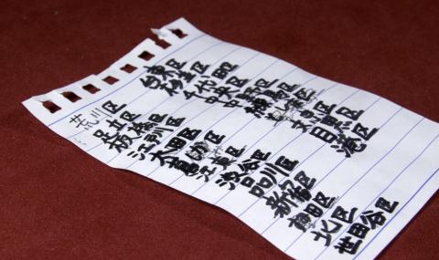 息子が近々東京23区を全て言えるかテストがあるそうで、暗記用に油性マジックで書いたメモを持ち込みました。