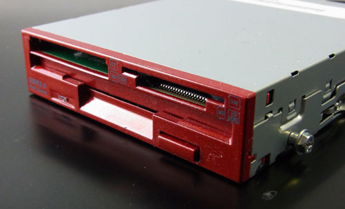 カードリーダー一体型のフロッピードライブ。カードリーダー自体がフロッピー末期に登場していただけあって、この組み合わせ自体が結構レアな製品なのだが、それに加えてなんとコイツは赤ベゼル!どんだけニッチなんだ。