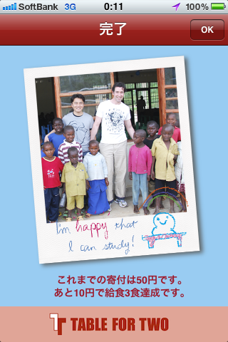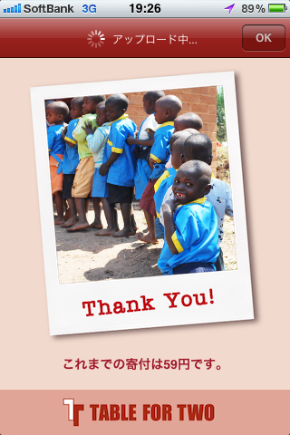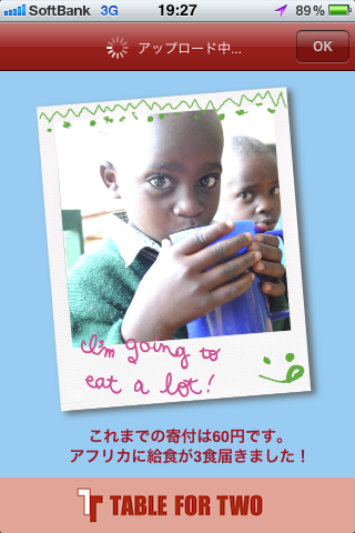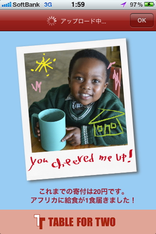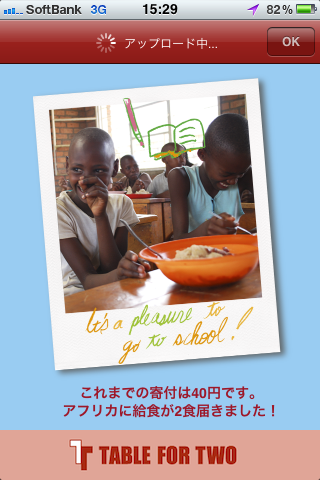食事の写真を20枚アップロードすると、アフリカのこどもたちに給食一食分をプレゼントするという仕掛けです。