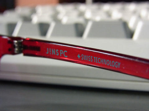 そしてフレームは汎用品にしてはなかなかホールド感がよく軽量。スタンダートモデルだからといってフレームにさほど手を抜いている訳では無さそう。JINS PCの文字もしっかりはいっている。