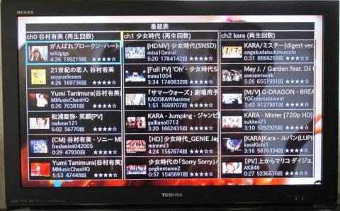 チャンネル登録はch0に「谷村有美」、ch1に「少女時代」、ch2に「KARA」と入力・変更してみました。