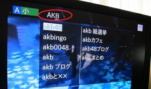 「AKB」と入力(検索は予測変換・変換リストが出るのでリモコンでも楽チンです)