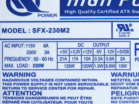 電源は230W SFX電源です、が4ピンのCPU補助電源が無いので最近のCPUは使えません。