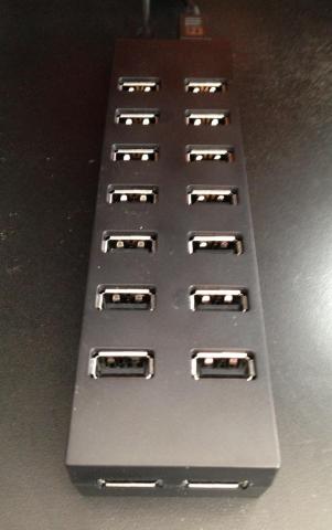 Mac Book Airに7ポートのセルフパワーUSBハブを使っていたのですが、外付けHDDやPC DJコントローラーとか、MIDIキーボードとか DAWソフトのableton live用のコントローラーとかとにかく接続するモノが多くて、バスパワーUSBハブを2個付けてなんとかやり過ごしていたのですが、それでも足りなくなったので16ポートUSBハブを買いました