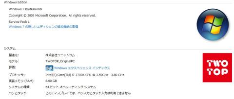 【 OS 】 Windows 7 Professional 正規版(DSP) 64bit