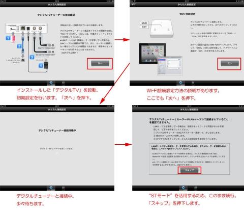 続いて、「デジタルTV(Station TV i)」を用いて、チューナーの初期設定を行います。先に述べたように、"STモード"での運用となる為、チューナー本体にはLANケーブルは接続しません。最後にLANケーブルが接続されていない旨のメッセージが表示されますが、これでOK。