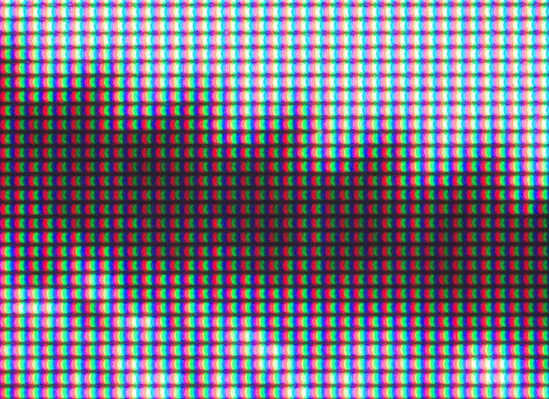 LG S-IPS液晶は発光素子が“く”の字型をしていることもあり、表面のギラツブがかなり気になり、「目の焦点が合わず、短時間の作業でもとても疲労がたまる。」と評されるパネルです。