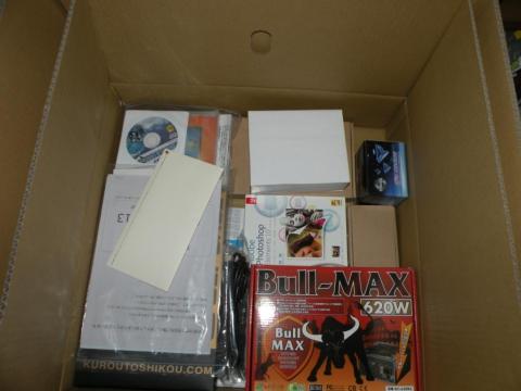 ソフトやPCの組み立てに使われたパーツの空箱や付属品などが入っていました。
