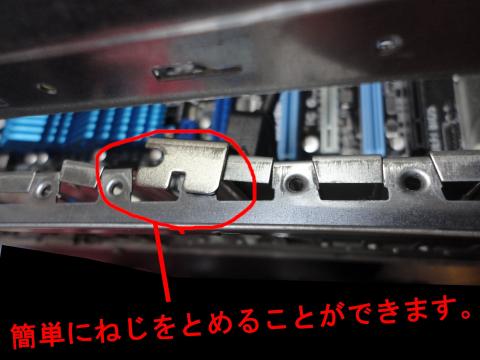 バックパネル下のPCIのパネルを取り付けるのは楽ですね