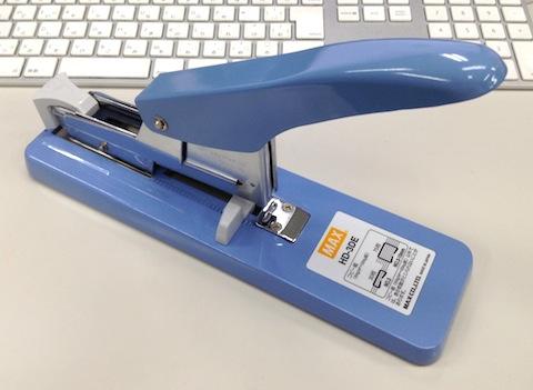 プレゼンするシーンが多い職種の方はまだまだ紙の資料や書類の場合が多いのでしょうか?あと友人なんかは「町内会の配付物を作るときに使う」と言ってましたね。渡す相手がご隠居さんとか年配の方が多いとデータで渡せませんね。そういう日に備えて持っておくこともできるのかなぁ。でも、自分の世代が皆リタイアする時代になると、そういうのもデータで配付するようになるのかなぁ。だと、この「大きなホッチキス」の出番はいつまで経っても来ないぞ(笑)
