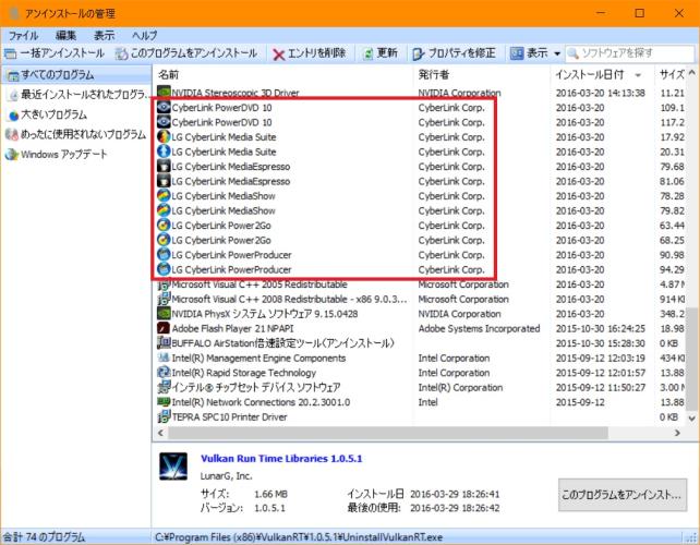 (「再インストール」では、「LG」と名の付く物は入れませんでした)