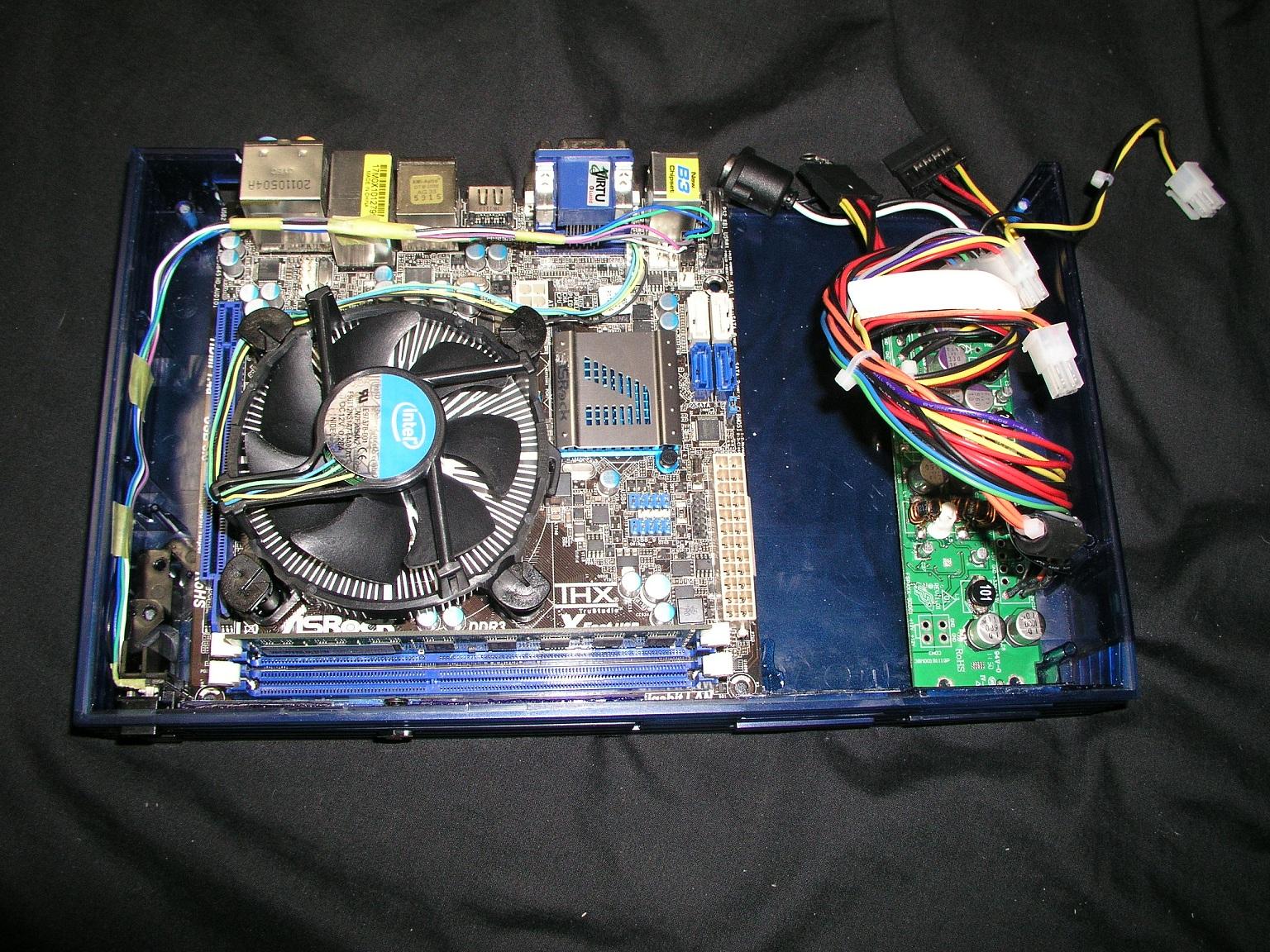 ACアダプタ本体と、ACアダプタの給電をATX電源準拠に変換するDC-DCコンバータ基板、ATX電源やSFX電源を撤去した跡を塞ぐ金具(DC-DC基板のマウンタとなる)がセットになった製品で、80+Goldに匹敵する88%超という高い変換効率が売り。