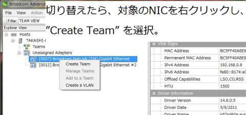 DL先はこちら。(Broadcom Teaming ドライバ バージョン:14.8.10.5)