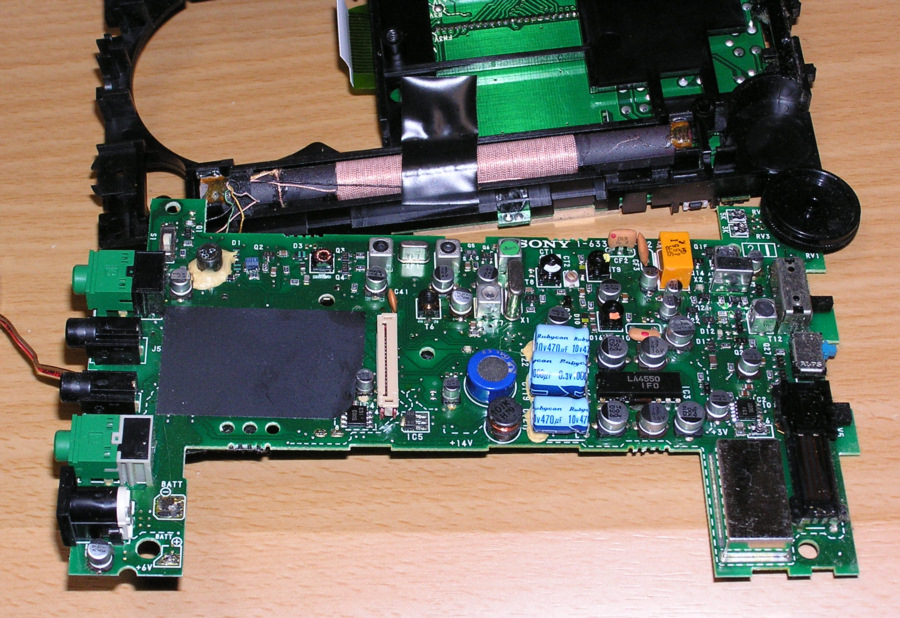 ここが一番面倒なんですが、さらに面倒なのが、基板右下の四角形の VCO回路の中にある電解Cの交換です。