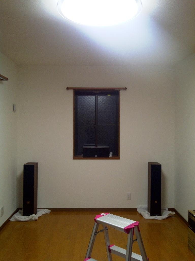 わかりにくいですがセンタースピーカーもすでに置いてあります。真ん中にプラズマTV(ビエラ)を置いて3ch構成にします。