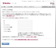 インストールに必要なプログラムをダウンロードするためには、マカフィーのホームページで「アカウント」の作成と「登録番号」を登録する必要があります。