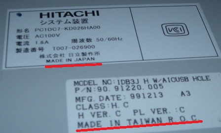 昔、"Made in USA"と書かれたPCカードが"Made in Japan"の箱に入って売られていたこともあります。これも、箱に入れた付属品と合わせたのは日本だからなのだと・・・・。