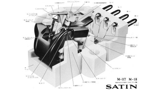 アナログ・オーディオプレーヤー用フォノカートリッジ サテン社(SATIN)が1970年代に発売したオーディオカートリッジです オークションで入手しました レコード針は腐食で途中から欠損してました