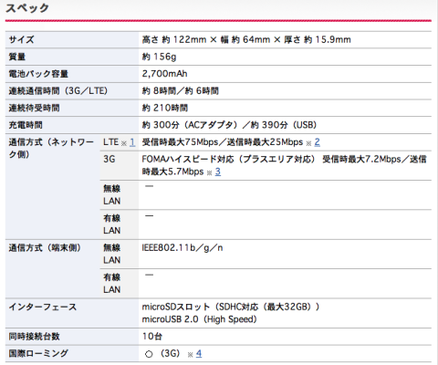 連続通話時間[3G:8時間][LTE:6時間]