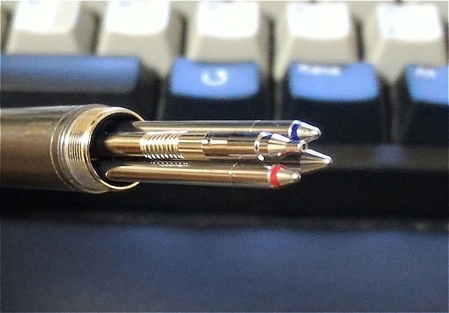 ドイツの筆記具メーカー“rotring“の多機能ペン。rotringとは、ドイツ語で赤い輪を意味し、同社の製品にはトレードマークとして赤い輪が記されている。