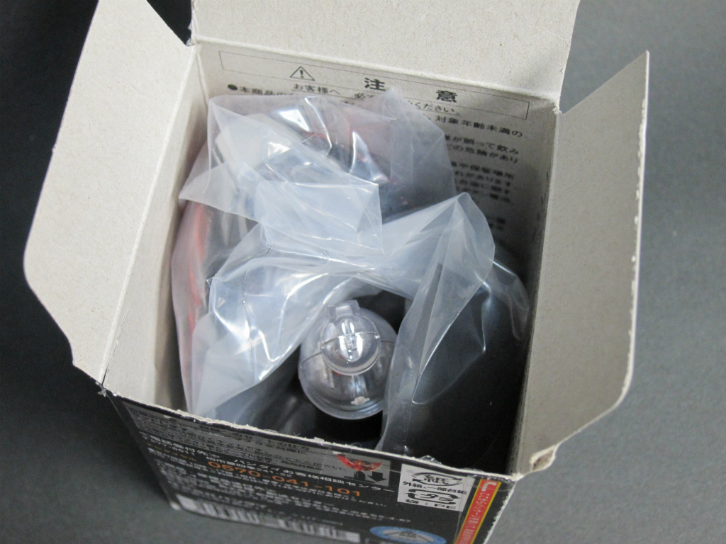 実際には組み立てられておらず、マスクの前半分と後半分が分かれています。